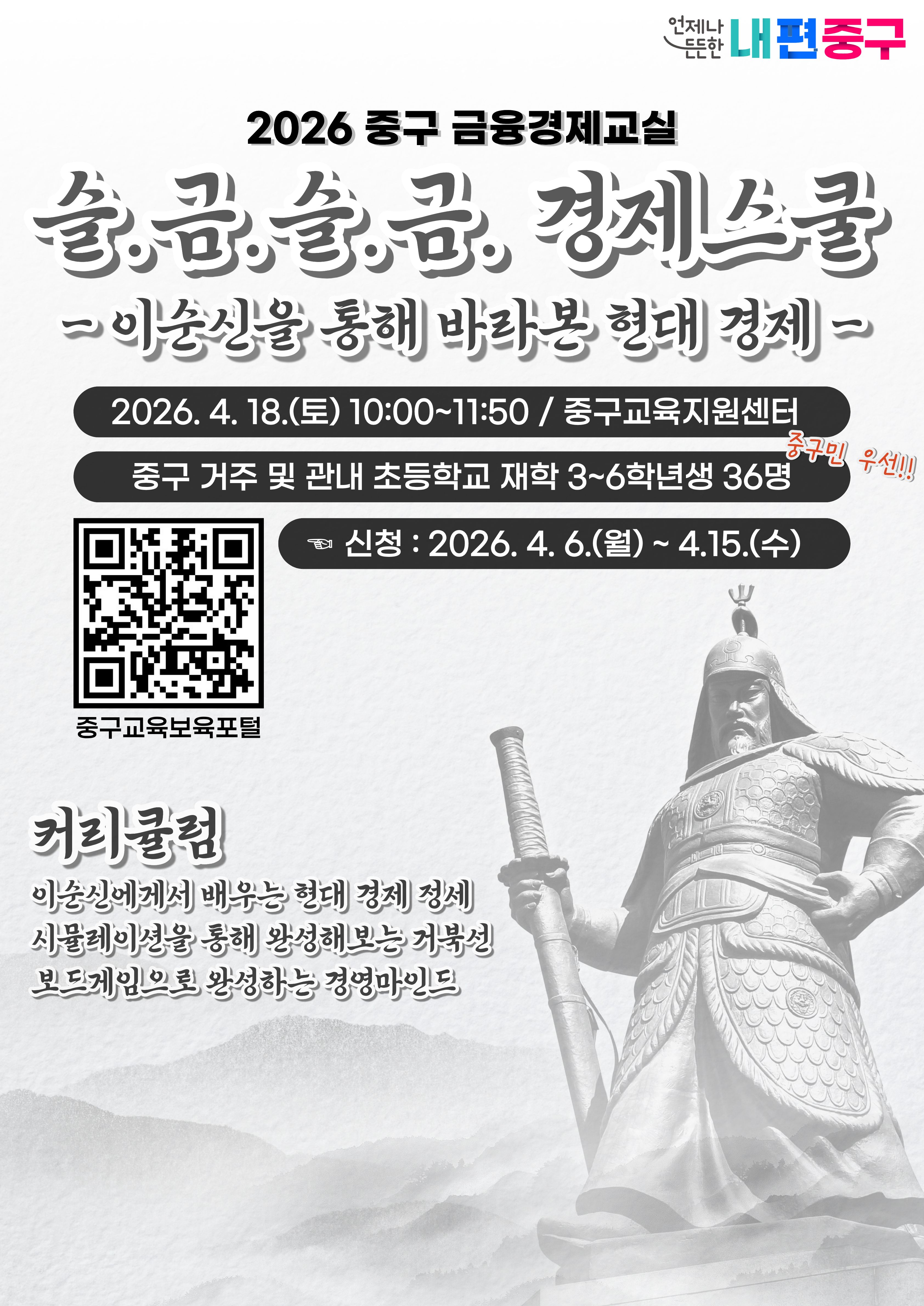(중구민 우선, 학부모님들도 청강 가능하십니다.)